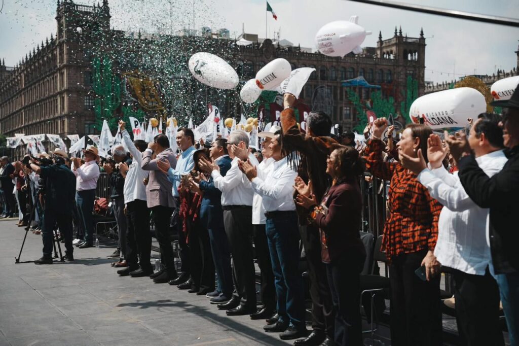 Desde el Zócalo de la Ciudad de México, la presidenta reafirmó el compromiso con la cuarta transformación de la vida pública de México, una transformación dijo, que le pertenece al pueblo. “Vamos por el camino correcto, estamos de pie con la fuerza de nuestra historia, con el orgullo de nuestro presente y la esperanza de nuestro porvenir”, aseguró.